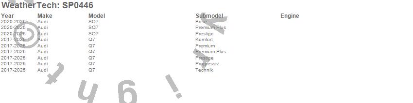 Below is an abbreviated list of applications for the Scratch Protection Film.Q7, SQ7, Audi, 2026, 2025, 2024, 2023, 2022, 2021, 2020, 2019, 2018, 2017