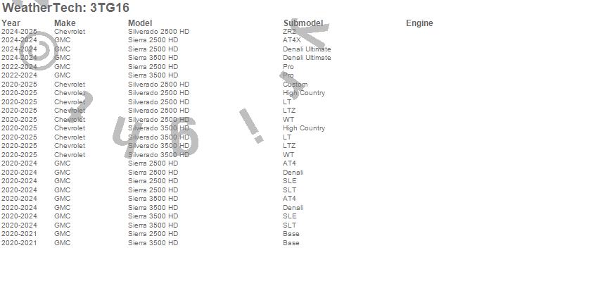 Below is an abbreviated list of applications for the WeatherTech TechLiner Tailgate Protector.Sierra 2500 HD, Sierra 3500 HD, Silverado 2500 HD, Silverado 3500 HD, Chevrolet, GMC, 2026, 2025, 2024, 2023, 2022, 2021, 2020