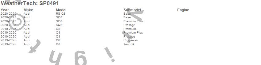 Below is an abbreviated list of applications for the Scratch Protection Film.Q8, RS Q8, SQ8, Audi, 2026, 2025, 2024, 2023, 2022, 2021, 2020, 2019