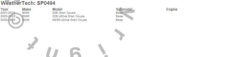 Brand: WeatherTechPart Number: SP0494Body Protection Film Type: TransparentUPC: 787765767699