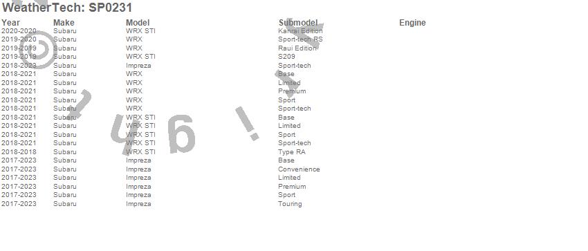 Below is an abbreviated list of applications for the Scratch Protection Film.Impreza, WRX, WRX STI, Subaru, 2023, 2022, 2021, 2020, 2019, 2018, 2017