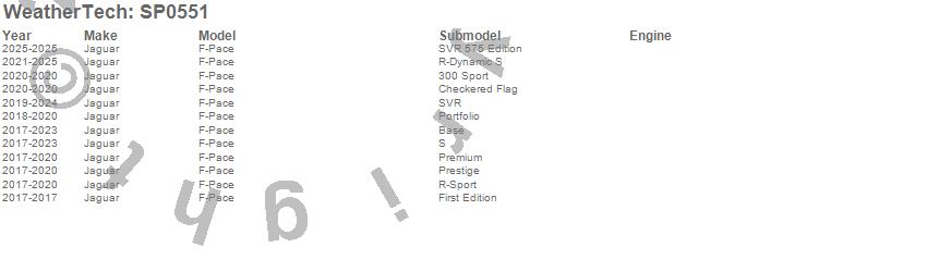 Below is an abbreviated list of applications for the Scratch Protection Film.F-Pace, Jaguar, 2026, 2025, 2024, 2023, 2022, 2021, 2020, 2019, 2018, 2017