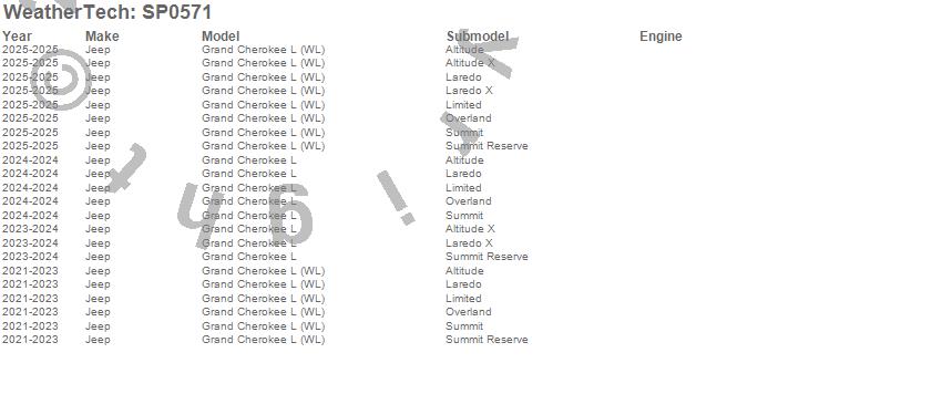 Below is an abbreviated list of applications for the Scratch Protection Film.Grand Cherokee L, Grand Cherokee L (WL), Jeep, 2025, 2024, 2023, 2022, 2021