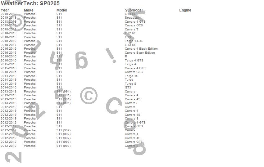 Below is an abbreviated list of applications for the Scratch Protection Film.911, Porsche, 2019, 2018, 2017, 2016, 2015, 2014, 2013, 2012