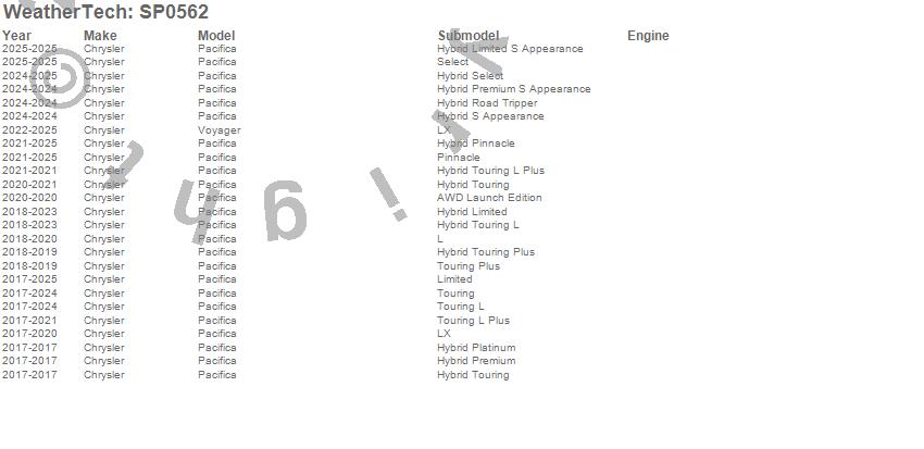 Below is an abbreviated list of applications for the Scratch Protection Film.Pacifica, Voyager, Chrysler, 2026, 2025, 2024, 2023, 2022, 2021, 2020, 2019, 2018, 2017