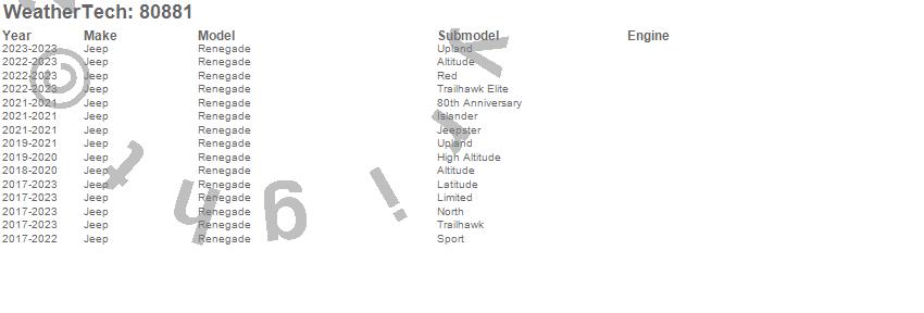 Below is an abbreviated list of applications for the Side Window Deflector.Renegade, Jeep, 2023, 2022, 2021, 2020, 2019, 2018, 2017