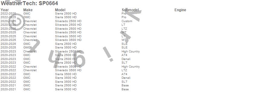 Below is an abbreviated list of applications for the Scratch Protection Film.Sierra 2500 HD, Sierra 3500 HD, Silverado 2500 HD, Silverado 3500 HD, Chevrolet, GMC, 2026, 2025, 2024, 2023, 2022, 2021, 2020