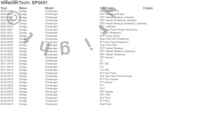 Below is an abbreviated list of applications for the Scratch Protection Film.Challenger, Dodge, 2023, 2022, 2021, 2020, 2019, 2018, 2017, 2016, 2015