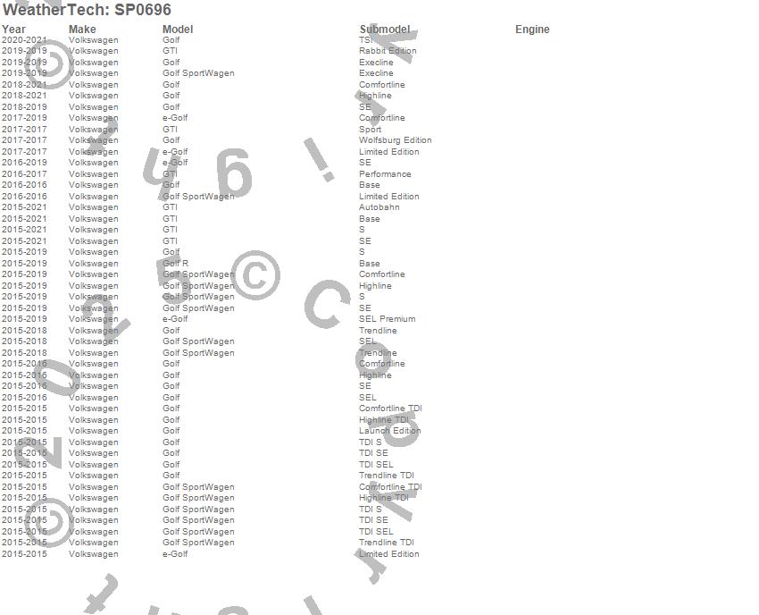 Below is an abbreviated list of applications for the Scratch Protection Film.e-Golf, Golf, Golf R, Golf SportWagen, GTI, Volkswagen, 2021, 2020, 2019, 2018, 2017, 2016, 2015