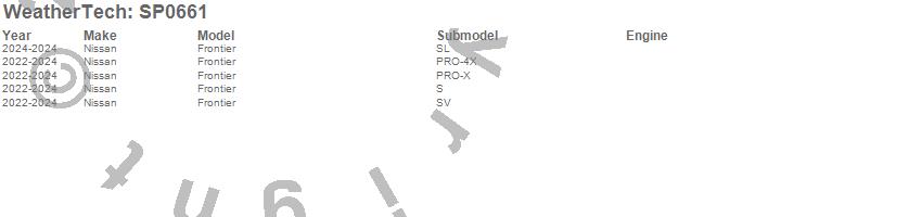 Brand: WeatherTechPart Number: SP0661Body Protection Film Type: TransparentUPC: 787765851671