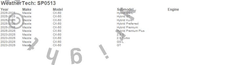 Below is an abbreviated list of applications for the Scratch Protection Film.CX-50, Mazda, 2026, 2025, 2024, 2023