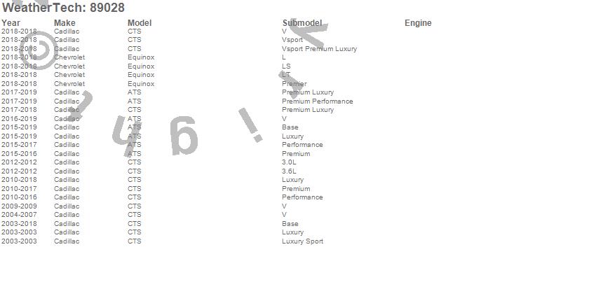 Below is an abbreviated list of applications for the Sunroof Wind Deflector.ATS, CTS, Equinox, Cadillac, Chevrolet, 2019, 2018, 2017, 2016, 2015, 2014, 2013, 2012, 2011, 2010, 2009, 2008, 2007, 2006, 2005