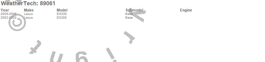 Below is an abbreviated list of applications for the Sunroof Wind Deflector.ES300, ES330, Lexus, 2006, 2005, 2004, 2003, 2002
