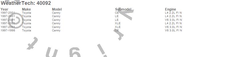 Below is an abbreviated list of applications for the Cargo Liner.Camry, Toyota, 2001, 2000, 1999, 1998, 1997
