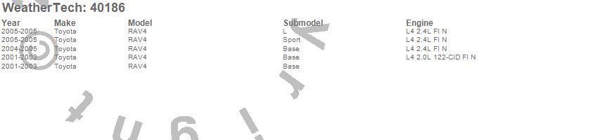 Below is an abbreviated list of applications for the Cargo Liner.RAV4, Toyota, 2005, 2004, 2003, 2002, 2001
