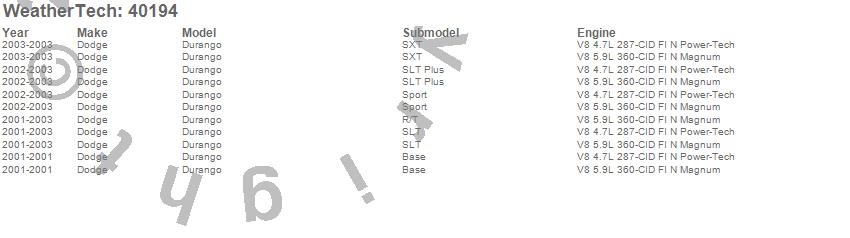Below is an abbreviated list of applications for the Cargo Liner.Durango, Dodge, 2003, 2002, 2001