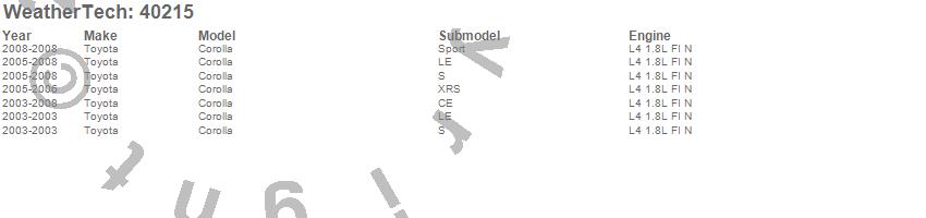 Below is an abbreviated list of applications for the Cargo Liner.Corolla, Toyota, 2008, 2007, 2006, 2005, 2004, 2003