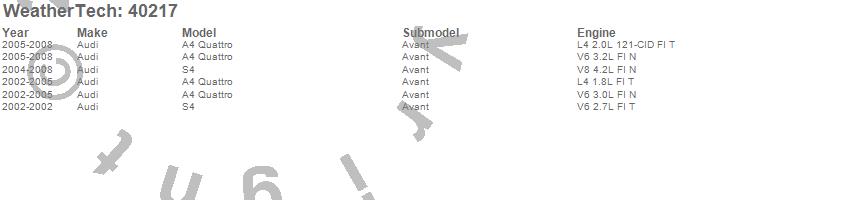Below is an abbreviated list of applications for the Cargo Liner.A4 Quattro, S4, Audi, 2008, 2007, 2006, 2005, 2004, 2003, 2002