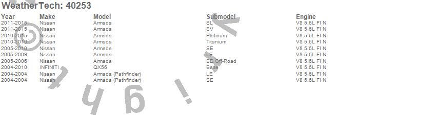 Below is an abbreviated list of applications for the Cargo Liner.Armada, Armada (Pathfinder), QX56, INFINITI, Nissan, 2015, 2014, 2013, 2012, 2011, 2010, 2009, 2008, 2007, 2006, 2005, 2004
