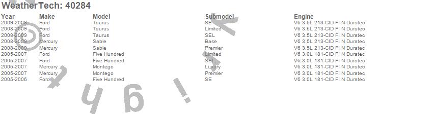 Below is an abbreviated list of applications for the Cargo Liner.Five Hundred, Montego, Sable, Taurus, Ford, Mercury, 2009, 2008, 2007, 2006, 2005