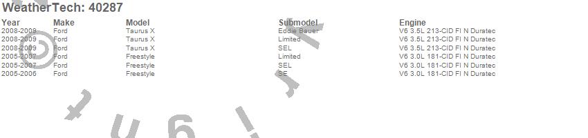 Below is an abbreviated list of applications for the Cargo Liner.Freestyle, Taurus X, Ford, 2009, 2008, 2007, 2006, 2005