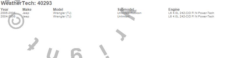 Below is an abbreviated list of applications for the Cargo Liner.Wrangler (TJ), Jeep, 2006, 2005, 2004
