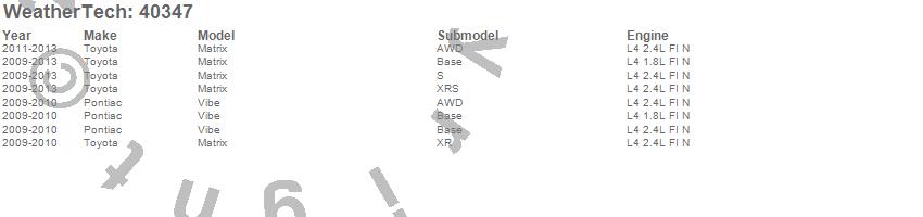 Below is an abbreviated list of applications for the Cargo Liner.Matrix, Vibe, Pontiac, Toyota, 2013, 2012, 2011, 2010, 2009