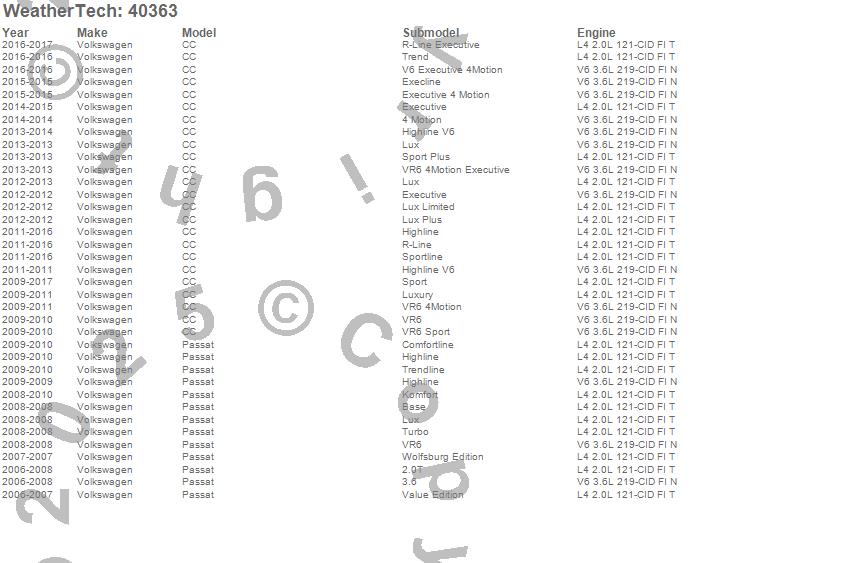 Below is an abbreviated list of applications for the Cargo Liner.CC, Passat, Volkswagen, 2017, 2016, 2015, 2014, 2013, 2012, 2011, 2010, 2009, 2008, 2007, 2006
