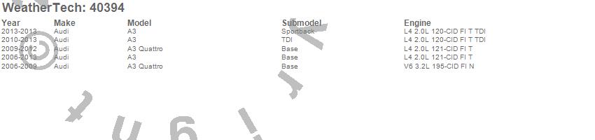Below is an abbreviated list of applications for the Cargo Liner.A3, A3 Quattro, Audi, 2013, 2012, 2011, 2010, 2009, 2008, 2007, 2006