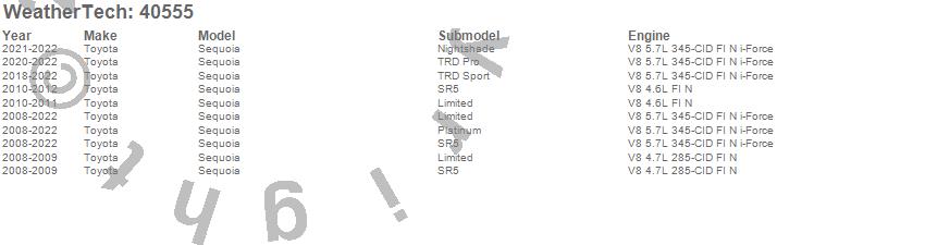 Below is an abbreviated list of applications for the Cargo Liner.Sequoia, Toyota, 2022, 2021, 2020, 2019, 2018, 2017, 2016, 2015, 2014, 2013, 2012, 2011, 2010, 2009, 2008