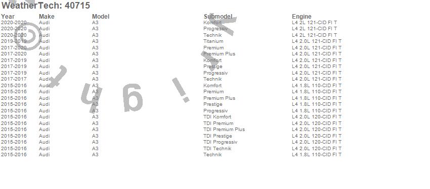 Below is an abbreviated list of applications for the Cargo Liner.A3, Audi, 2020, 2019, 2018, 2017, 2016, 2015
