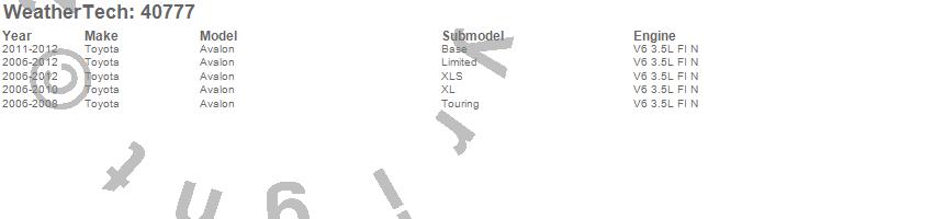 Below is an abbreviated list of applications for the Cargo Liner.Avalon, Toyota, 2012, 2011, 2010, 2009, 2008, 2007, 2006