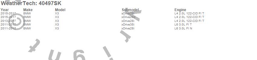 Below is an abbreviated list of applications for the Cargo Liner w/Bumper Protector.X3, BMW, 2017, 2016, 2015, 2014, 2013, 2012, 2011