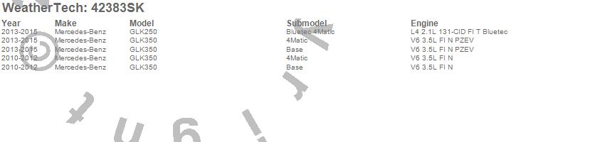 Below is an abbreviated list of applications for the Cargo Liner w/Bumper Protector.GLK250, GLK350, Mercedes-Benz, 2015, 2014, 2013, 2012, 2011, 2010
