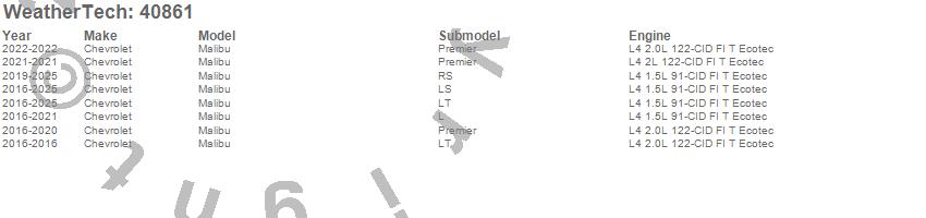 Below is an abbreviated list of applications for the Cargo Liner.Malibu, Chevrolet, 2025, 2024, 2023, 2022, 2021, 2020, 2019, 2018, 2017, 2016