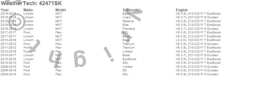 Below is an abbreviated list of applications for the Cargo Liner w/Bumper Protector.Flex, MKT, Ford, Lincoln, 2019, 2018, 2017, 2016, 2015, 2014, 2013, 2012, 2011, 2010, 2009