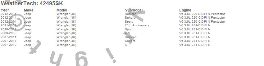 Below is an abbreviated list of applications for the Cargo Liner w/Bumper Protector.Wrangler (JK), Jeep, 2014, 2013, 2012, 2011, 2010, 2009, 2008, 2007
