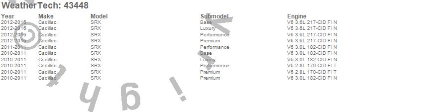 Below is an abbreviated list of applications for the Cargo Liner.SRX, Cadillac, 2016, 2015, 2014, 2013, 2012, 2011, 2010