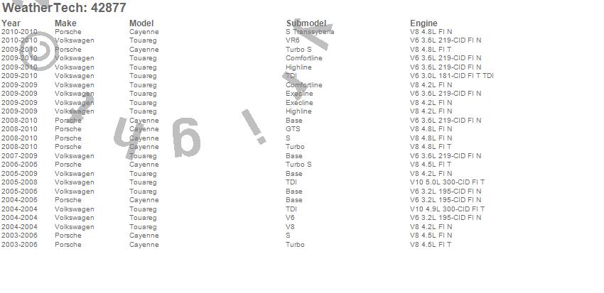 Below is an abbreviated list of applications for the Cargo Liner.Cayenne, Touareg, Porsche, Volkswagen, 2010, 2009, 2008, 2007, 2006, 2005, 2004, 2003