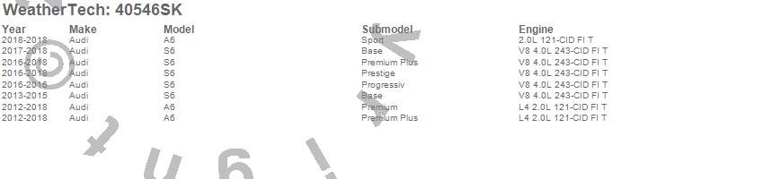 Below is an abbreviated list of applications for the Cargo Liner w/Bumper Protector.A6, S6, Audi, 2018, 2017, 2016, 2015, 2014, 2013, 2012