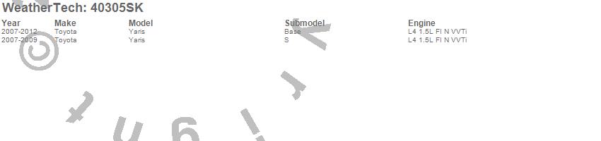 Below is an abbreviated list of applications for the Cargo Liner w/Bumper Protector.Yaris, Toyota, 2012, 2011, 2010, 2009, 2008, 2007