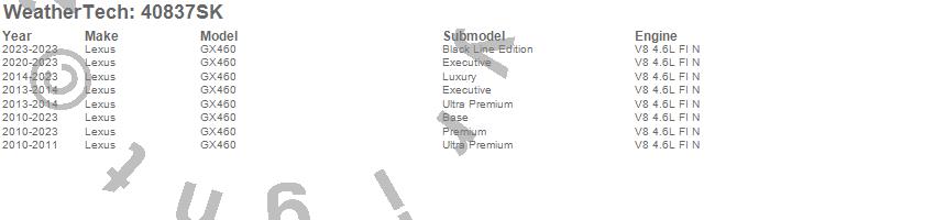 Below is an abbreviated list of applications for the Cargo Liner w/Bumper Protector.GX460, Lexus, 2023, 2022, 2021, 2020, 2019, 2018, 2017, 2016, 2015, 2014, 2013, 2012, 2011, 2010