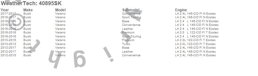 Below is an abbreviated list of applications for the Cargo Liner w/Bumper Protector.Verano, Buick, 2017, 2016, 2015, 2014, 2013, 2012