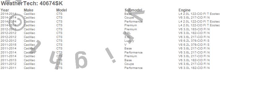 Below is an abbreviated list of applications for the Cargo Liner w/Bumper Protector.CTS, Cadillac, 2015, 2014, 2013, 2012, 2011