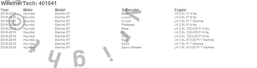 Below is an abbreviated list of applications for the Cargo Liner.Elantra GT, Hyundai, 2020, 2019, 2018