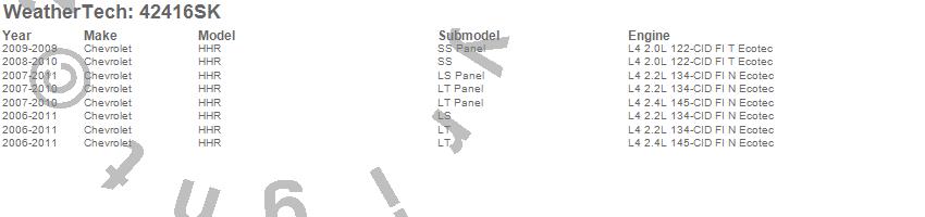 Below is an abbreviated list of applications for the Cargo Liner w/Bumper Protector.HHR, Chevrolet, 2011, 2010, 2009, 2008, 2007, 2006