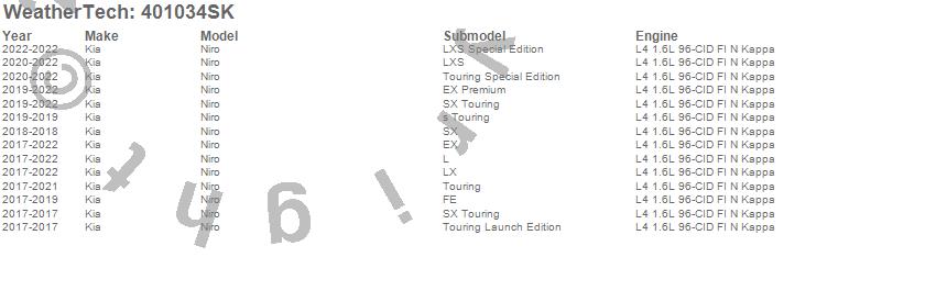 Below is an abbreviated list of applications for the Cargo Liner w/Bumper Protector.Niro, Kia, 2022, 2021, 2020, 2019, 2018, 2017