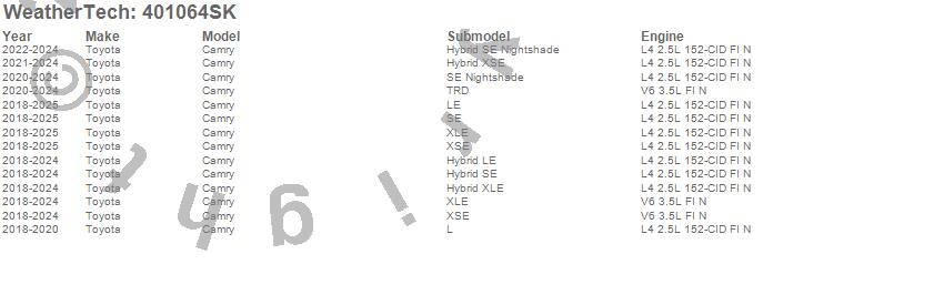 Below is an abbreviated list of applications for the Cargo Liner w/Bumper Protector.Camry, Toyota, 2026, 2025, 2024, 2023, 2022, 2021, 2020, 2019, 2018