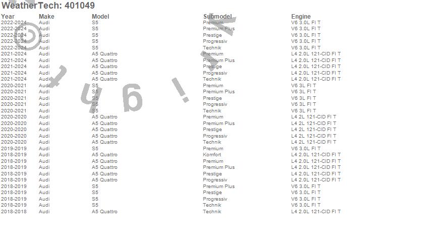 Below is an abbreviated list of applications for the Cargo Liner.A5 Quattro, S5, Audi, 2024, 2023, 2022, 2021, 2020, 2019, 2018