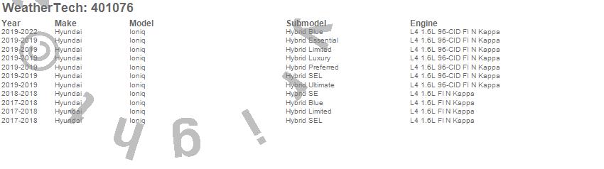 Below is an abbreviated list of applications for the Cargo Liner.Ioniq, Hyundai, 2022, 2021, 2020, 2019, 2018, 2017